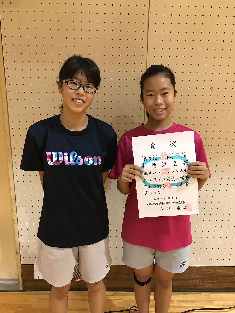 北河内地区個人戦で東香里中学校1年大田羽さんが準優勝、桜丘中学校1年清末ここりさんが3位となりました。